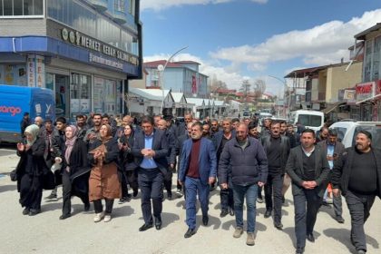 Piştî meşa heta ber avahiya DEM Partî ya navçeyê, Berdevka TJA’yê Hatîce Oncu daxuyanî da.