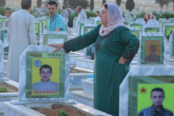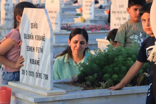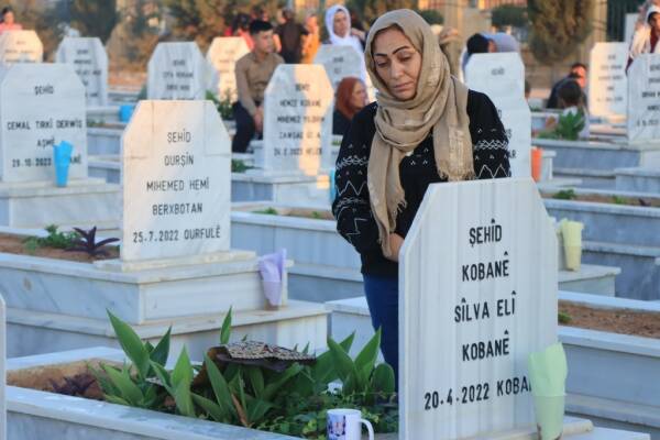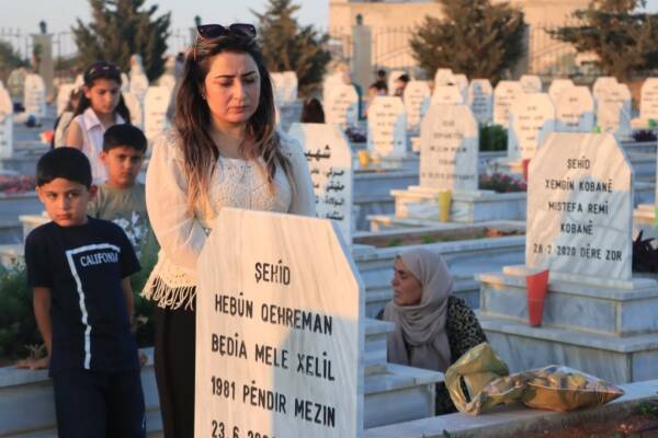 Gelê bajarê Kobanê ya Kantona Firatê di erefeya Cejna Qurbanê de serdana gorên şehîdên ku welatê xwe li dijî dagirkerî û êrîşên qirkirinê parastin, kirin.