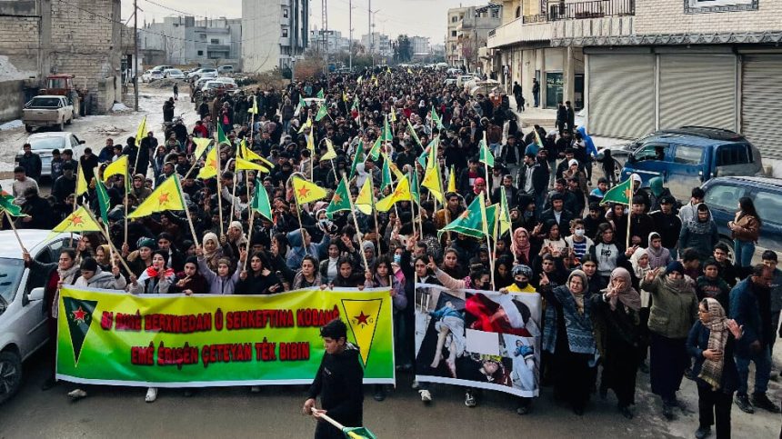 Meşê li Qada Jina Azad destpê kir û heta Qada Şehîd Egîd bi dirûşmên dilsoziya bi berxwedana YPJ, YPG û QSD’ê dewam kir.