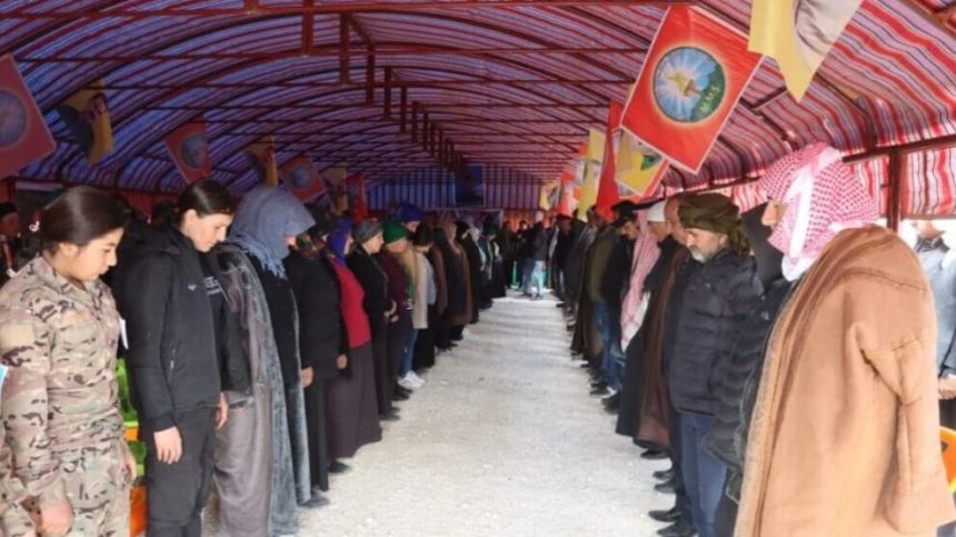 Gelê kantona Tebqayê, koçberên kantona Efrîn û Şehbayê sersaxî da malbatê endamê Hêzên Ewlekariya Hundirîn şehîd Şervan Rojvan û soza şopandina rêça şehîdan da.