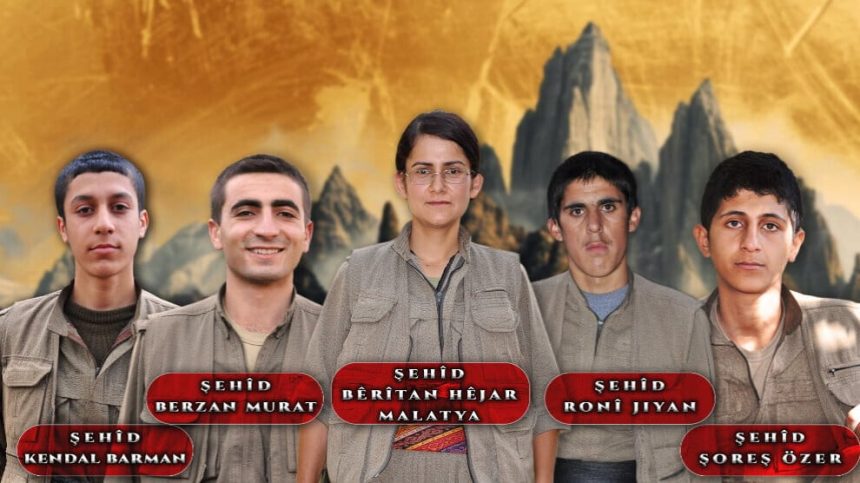 “Milîtanên fedayî yên Apoyî yên Têkoşîna Azadiya Kurdistanê Bêrîtan Hêjar Malatya, Berzan Murat, Kendal Barman, Şoreş Ozer û Ronî Jiyan, di têkoşîna sala 2017’an de li Herêmên Parastinê yên Medyayê şehîd bûn.