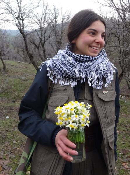 Hevrêya me di sala 2014’an de tevlî nava refên Têkoşîna Azadiyê ya Kurdistanê bû û berê xwe da warê gerîla. Hevrêya me zanîbû ku yekane cihê karibe bersivê ji lêgerînên xwe re peyda bike çiyayên azad e, lewma xwegihandina çiyayê azad ji bo xwe weke xwebûnê dît. Hevrêya me di demeke kurt de hînî jiyana li çiyê bû û beşdarî nava perwerdeyên bingehîn ên gerîla bû. Bi dilxwaziya xwe ya hînbûnê û tevlîbûna xwe ya bi kelecan bû namzeteke mînak a gerîla. Bi tevlîbûna xwe ya cewherî, jiyana xwe ya sade, dilnizm û kedkar li nava hevrêyên xwe hemûyan bû cihê hezkirinê. Hevrêya me wateyeke xurt da rêwîtiya xwe ya ji Ewropayê ber bi çiyayên Kurdistanê û têkiliyeke xurt bi Rêber Apo re danî, bi vî rengî perwerdeya xwe bi serketî qedand. Li qadên pratîkî di demeke kurt de bû xwedî tecrûbeyên li ser jiyana gerîla, ji bo ji aliyê îdeolojîk ve xwe kûrtir bike beşdarî nava perwerdeyên akademiyê bû. Hevrêya me dixwest di mijara Îdeolojiya Azadiya Jinê de xwe kûr bike, bibe pêşenga civakên jinên azad û di pêvajoya perwerdeyê de kete nava kûrbûnan. Parêznameyên Rêbertî yên ku dixwend di nava jiyanê de bi hevrêyên xwe re parve dikir, bi vî rengî tevkarî li pêşketina hevrêyên xwe dikir û ji bo felsefeya Apoyî bikeve meriyetê ked da. Piştî ku perwerdeya xwe qedand beşdarî nava karên stratejîk bû, bi xwezayîbûn, durustî û tevlîbûna xwe ya bêteredût a li têkoşîna azadiyê her wezîfe bi rengekî hêja bi cih anî.