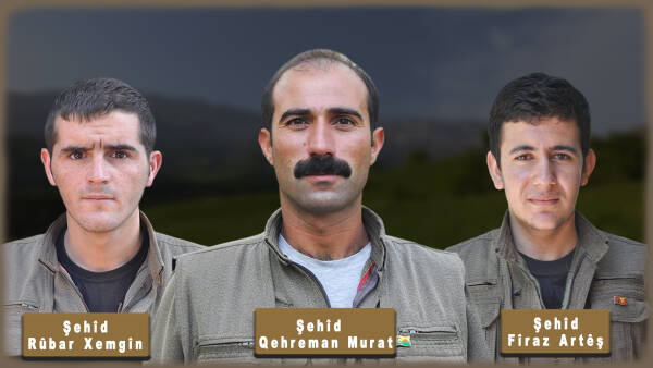 “Di êrîşa dijmin a ku di 30’ê Îlona 2022’an de li qada Berxwedana Serdemê ya Girê Hakkarî ya Metîna pêk hat de, hevrêyên me yên Apoyî yên hêja Qehreman Mûrat, Rûbar Xemgîn û Fîraz Artêş heta nefesa xwe ya dawî berxwedaneke fedayî nîşan dan û şehîd bûn.