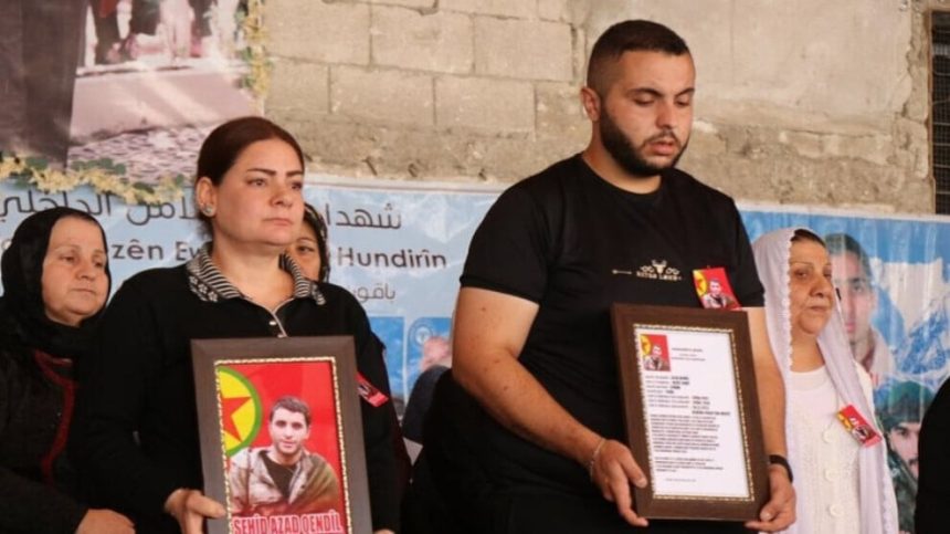 Di dawiyê de endama Meclisa Malbatên Şehîdan Zelûx Qenber nasnameya şehîd Azad Qendîl xwend û radestî malbata wî kir.