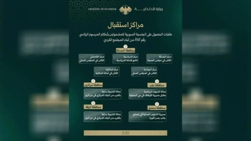 Wezareta Hundirîn a hikumeta demkî ya Sûriyeyê diyar kir ku wê ji 6ˊê Nîsanê ve, li gorî fermana qanûnî ya bi hejmara 13ˊan a sala 2026ˊan, dest bi qeydkirina navên Kurdên ku nasnameyên wan tune ne (mektûm) bikin.