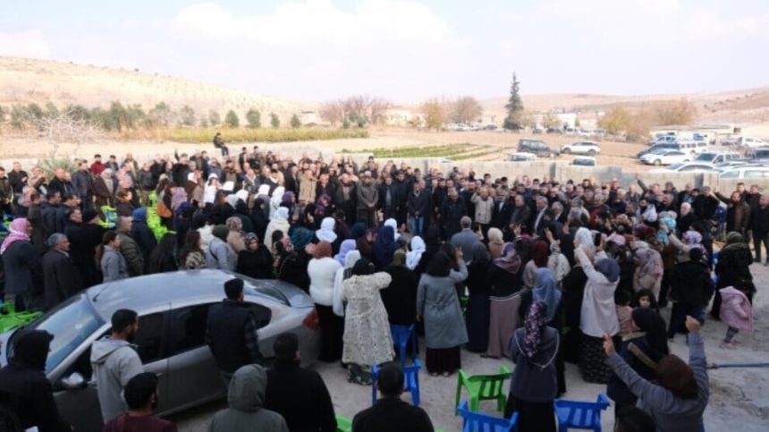 Gundiyên ku li ber deriyê gund pêşwaziya kesên ku tevlî şînê bûn kirin, bi dirûşmeyên wekî “Şehîd namirin”, “Bijî Rêber Apo” û tilîliyan ber bi mala şînê ve meşiyan.