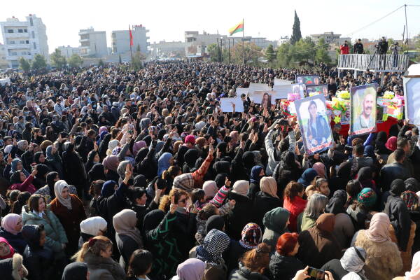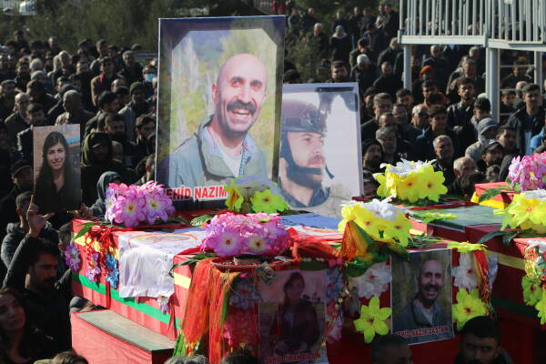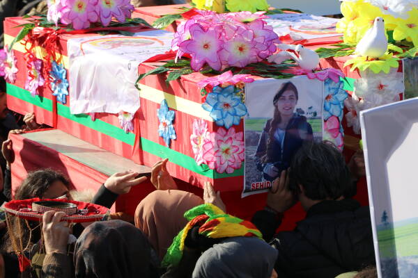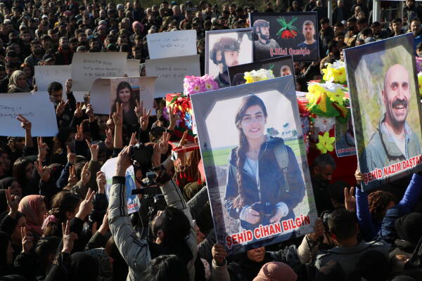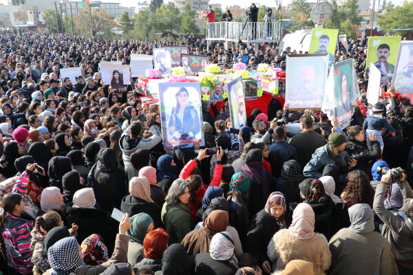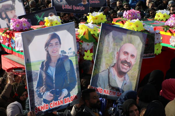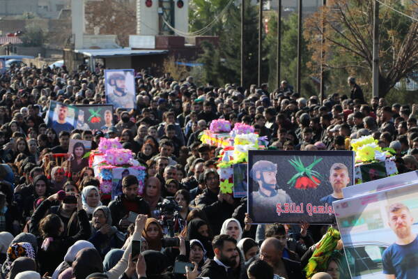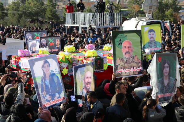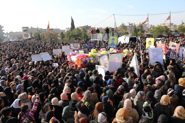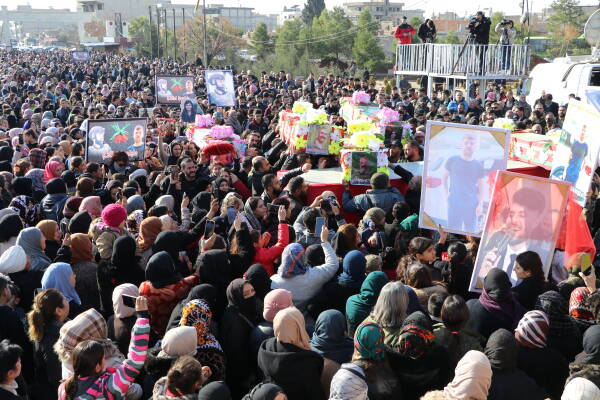Xelkê Qamişloyê ji bo 2 rojnamevan û 3 şervanên di êrişên dewleta Tirk a dagirker de şehîd bûn, merasîmeke girseyî lidar xist.