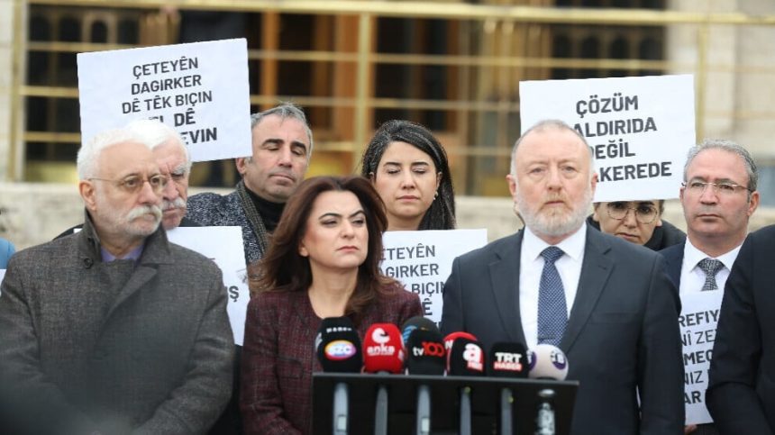 Koma Meclise ya Partiya Demokrasî û Wekheviyê ya Gelan (DEM Partî) bi Serokwekîlên DEM Partiyê re tekildarî êrişên Hikumeta Demkî ya Şamê yên li dijî taxên Şexmeqsûd û Eşrefiyê pêk tîne li ber deriyê meclise daxuyanî dan. Parlamenterên tevlî daxuyaniyê bûn dovîzên li ser, “Bijî berxwedana gelê Kurd”, “Ji komkujiya Helebê re na” û “Çareserî ne di êrişan de ye, di muzakereyê de ye” dinivisî hilgirtin. Di daxuyaniyê de Sezaî Temelî axivî û bi lêv kir ku ew li dijî êrişan bi hersin û wiha got: “Gelên Rojhilata Navîn careke din ji komkujiyê re rû bi rû ne. Heta niha di êrişên taxên Helebê de 10 welatiyan jiyana xwe ji dest da.”