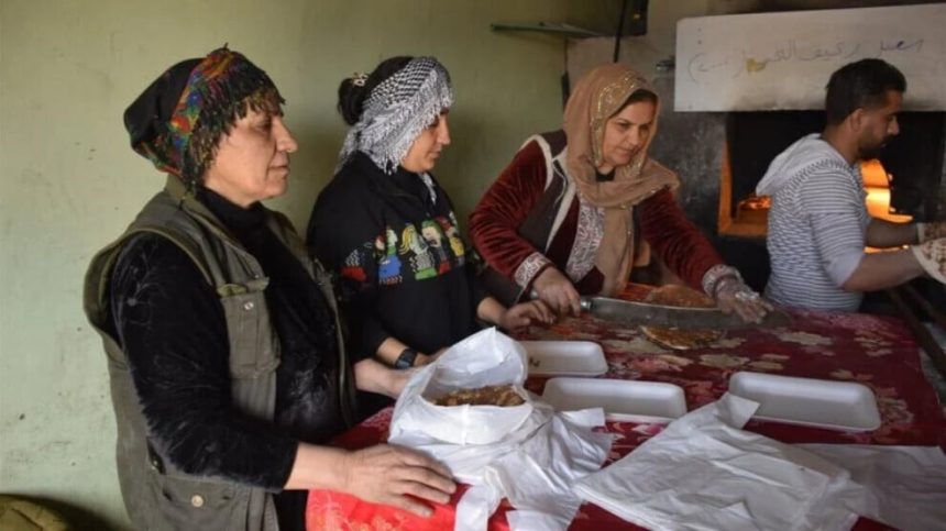 Yek ji dîmenên piştgiriya berxwedanê li Komîna Şehîd Dewran a bajarê Dirbêsiyê xuya dibe. Jinên ji taxê rojane ji bo şervanan xwarinê amade dikin, li şervanên li eniyên parastinê belav dikin.