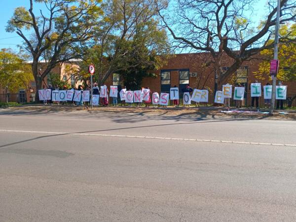 Jinên Efrîka Başûr jî piştgirî dan vê kampanyayê. Di 10’ê Tebaxê de li ber Sefaretxaneya Bilind a Îranê ya li Pretorîayê ji bo tevlî dengê yekbûyî yê kampanya “Na ji darvekirinê re, erê ji jiyana azad re” bibe xwepêşandanek pêk anî.