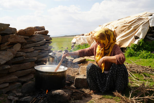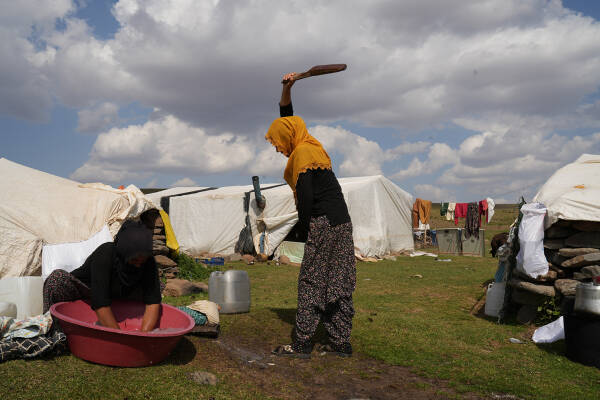 Barê herî giran ê vê zehmetiyê jî li ser pişta jinan e. Jin berbanga sibehê radibin, heywanên xwe didoşin, piştre jî nan lê dixin, kincan dişon û neçar dimînin ku tevahiya rojê li ser piyan bin.