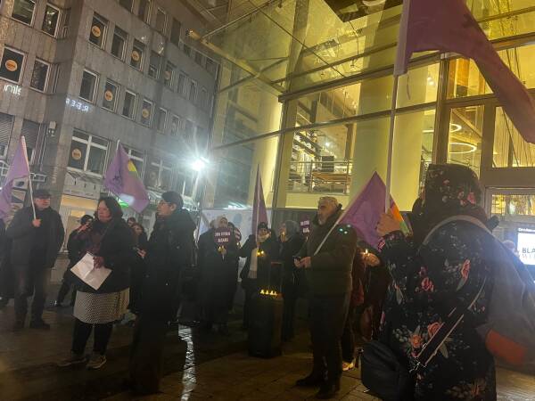 Di çalakiyê de daxuyaniyên 25’ê Mijdarê yên Tevgera Jinên Ewropayê û bangên bi dehan rêxistinên jinan hatin xwendin û peyamên piştgiriyê ji berxwedana jinan re li herêmên cuda yên cîhanê hatin şandin.