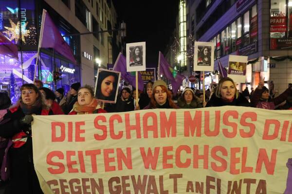 Li Berlînê, bi sedan jin di çarçoveya Roja Têkoşîna Navneteweyî ya Li Dijî Tundiya Li Ser Jinan a 25’ê Mijdarê de daketin kolanan û bal kişandin ser tundiya li ser jinan û polîtîkayên mêr-dewletê.
