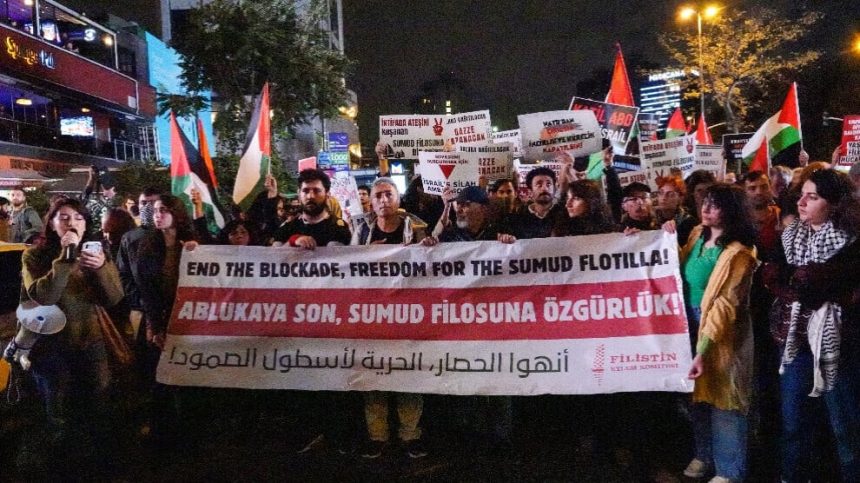 Komîteya Çalakiyê ya Fîlîstînê êrîşa artêşa Îsraîlê ya li ser Fîloya Sumud a Navneteweyî li Stenbolê bi meşeke girseyî şermezar kir.