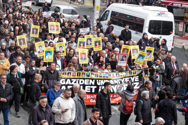 Di tevahiya meşê de dirûşmên “Şehîdên Gaziyê namirin”, “Şehîdên Gaziyê rûmeta me ne”, “Gelê Gaziyê li vir e, kujer li ku “derê ne, “Ji bo Gaziyê edalet ji bo her kesî edalet”, “Kuj”erê Gaziyê dewleta Sûsûrlûkê ye” hatin berzkirin.