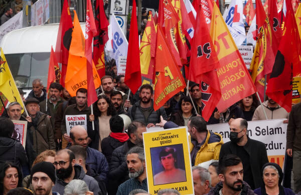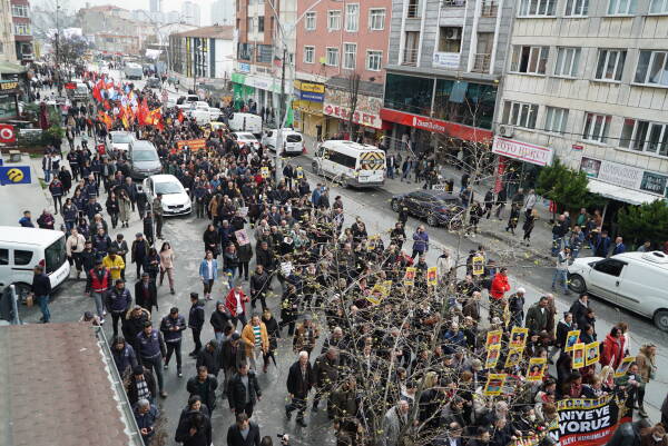 Girseya ku li ber Cemxanê kom bûn bi wêneyên kesên hatin qetilkirin û pankarta “Em ji Gaziyê heta Umraniyê edaletê dixwazin” heta Parka Huseyîn Altin a ku 29 sal berê gelek kes lê hatin qetilkirin, meşiyan.