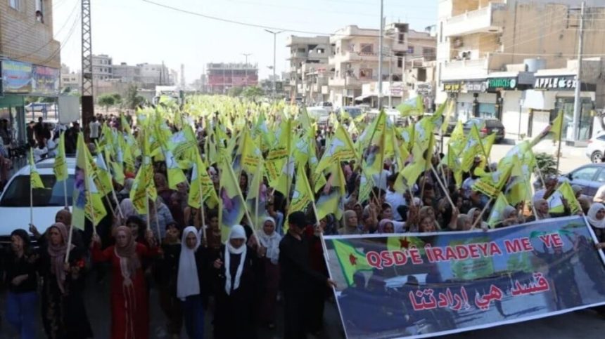 Îro wê li 9 bajarên kantonên Cizîrê û Firatê meşên girseyî werin lidar xistin da ku êrîşên çeteyên Hikûmeta Demkî yên li ser Bakur û Rojhilatê Sûriyê şermezar bikin û piştgiriyê bidin QSD'ê.