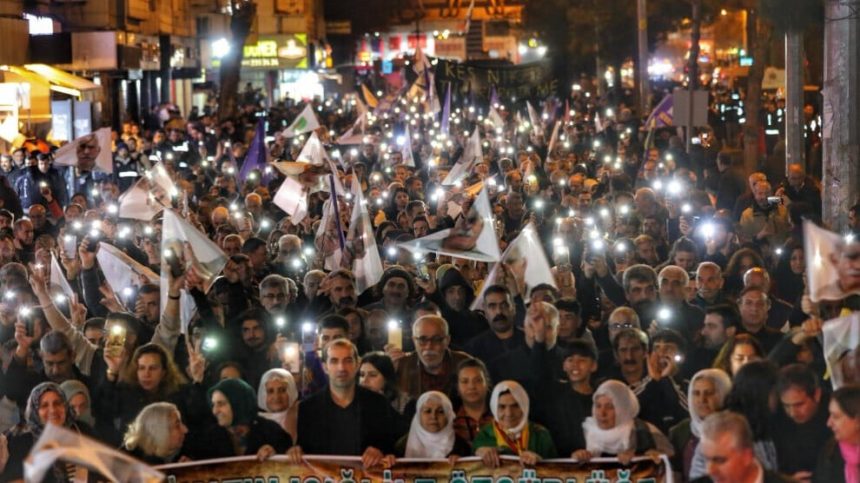 Di pêşengtiya Platforma Saziyên Demokratîk de bi boneya salvegera komploya 15’ê Sibatê ya Navneteweyî ya li dijî Rêber Apo hate pêkanîn bi dirûşma “Bi ronahiya heqîqetê ber bi azadiyê ve” li Amedê meşek hate lidarxistin. Hevserokê Partiya Herêmên Demokratîk (DBP) Keskîn Bayindir, endam û rêveberên partiyên siyasî, saziyên sivîl ên civakî û bi sedan kes beşdarî meşê bûn. Girseya ku li ber Bîrdariya Mafên Mirovan a Koşûyolûyê kom bû, alên ku wêneyê Rêberê Gelê Kurd Abdullah Ocalan li ser hilgirtin. Di meşê de pankartên “Kes nikare tu carî roja me tarî bike” û “Bi ronahiya heqîqetê ber bi azadiyê ve” hatin hilgirtin û ronahiyên telefonan hatin vekirin. Girseyê di meşê de her tim dirûşmên “Bijî Serok Apo” , “Bê Serok jiyan nabe” , “Silav silav ji Îmraliyê re hezar silav” , “Bijî berxwedana Rojava” û “Jin jiyan azadî” berz kir.