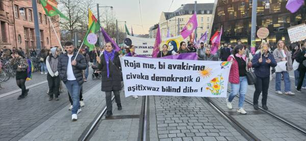 Li Freiburgê Meclîsa Jinê ya Nuda jî di nav de bi pêşengiya 8 rêxistinên jinan de jin daketin qadan. Meş li navenda bajerê Freiburgê hate kirin û pankarta gotina Rêberê Gelê Kurd Abdullah Ocalan a “Roja me, bi avakirina civaka demokratik û aşitîxwaz bilind dibe” hate hilgirtin. Di axaftinên çalakiyê de hate destnîşankirin ku azadiya jinê bingeha azadiya civakê ye. Her wiha hate destnîşankirin ku fikrên ku Rêber Apo têkildarî azadîxwaziya jinê bi salan in tîne ser ziman, îro hem li Kurdistanê hem jî li cîhanê deng vedaye.