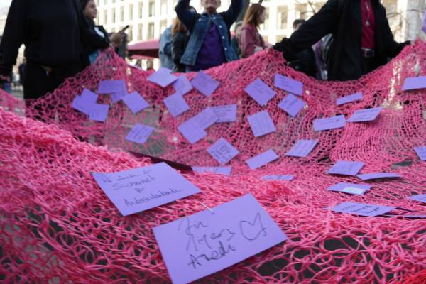 Beşdaran bi dirûşmeyên “Jin, Jiyan, Azadî” meşiyan û li dijî tundiya li ser jinê, newekhevî û zextan dengê xwe bilind kirin. Di axaftinên çalakiyê de îşaret bi binpêkirinên mafan ên ku jin li seranserê cîhanê rûbirû dimînin hate kirin. Her wiha îşaret bi girîngiya piştevanî û birêxistinbûnê hate kirin.