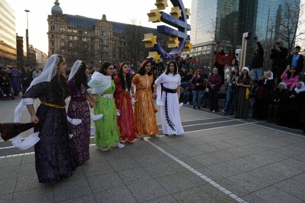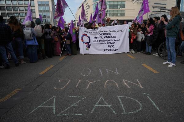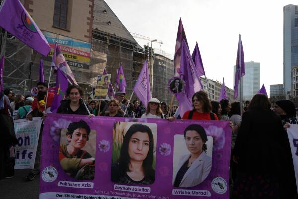 Bi hezaran jinên ku li bajarên Elmanyayê daketin qadan, bi cilên xwe yên neteweyî, tililî û coşa xwe kolananan bi reng kirin. Jinên Kurd peyama “Jin, Jiyan, Azadî” rêya civaka wekhev, demokratîk û ekolojîk nîşan dide.”