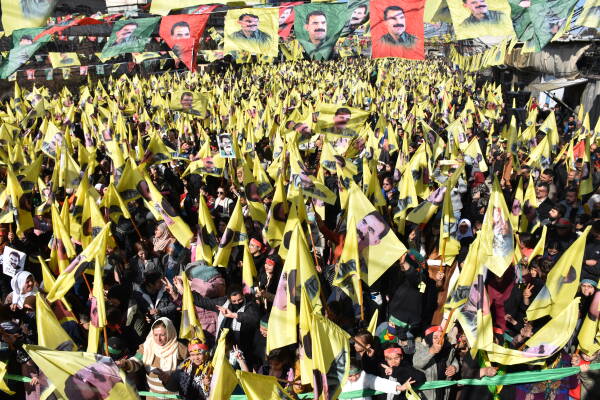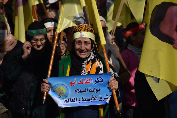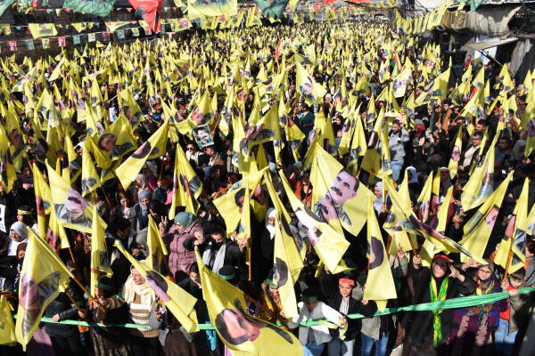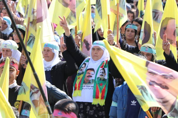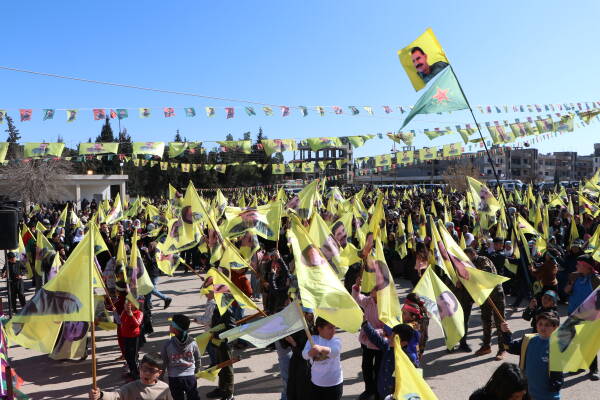 Di mitînga ku bi hezaran kes beşdar bûn de, wêneyên Rêber Apo hatin hildan û dirûşmeyên, “Bê Serok jiyan nabe” û “Azadiya Ocalan azadiya gelên herêmê ye” hatin berzkirin.