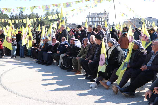 Bi deh hezaran şêniyên bajarê Qamişlo, Tirbespiyê, Til Hemîs û Amûdê li bajarê Qamişlo ya Kantona Cizîrê li Stadyuma 12 Adarê hatin ba hev û mitîngeke girseyî lidarxistin.