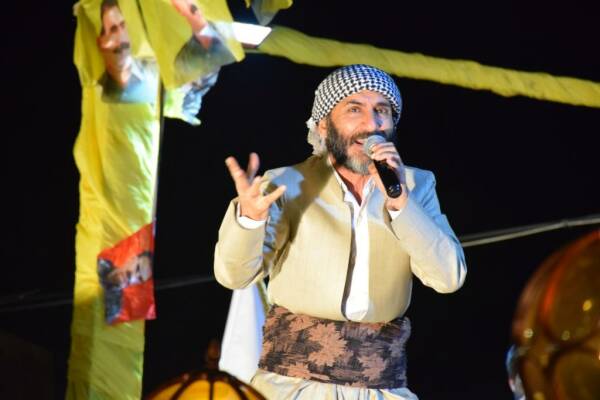 Piştî axaftina Hesen Koçer hunermendê Kurd Niyaz Sîdo û hunermenda ji pêkhateya Ereb Qemer Ferîc stran bi zimanê erebî û kurdî gotin.