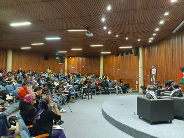 Paz Gonzalez (endama Navenda Çandî ya La Hoguera, Bogotá): “Komkujiyên li Filistînê bi zindî li ser televîzyonê têne weşandin û tirs normal dibe. Mirovahî li ber çavên me dimire. Têkoşîna me ji bo mirovahiyê ye.”