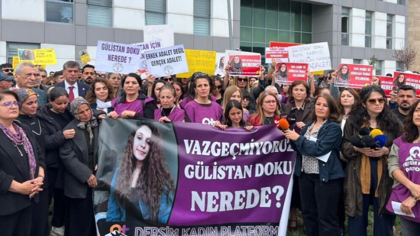 Platforma Jinan a Dersimê, têkildarî geşedanên di çarçoveya lêpirsîna Gulistan Dokuyê de ku 6 sal berê hatibû windakirin, li pêşiya Edliyeya Dêrsimê daxuyaniyê didin.  Endamên malbata Doku, wekîl û gelek jin tevlî daxuyaniyê bûn. Di daxuyaniyê de wêneyên Gulistan Dokuyê û pankartên “Ne ji bo jinên winda bûn, ji bo yên hatine windakirin edalet”, “Mêr êriş dike, dewlet diparêze”, “Ne edaleta mêr, edaleta rast”, “Ji bo Gulistan Doku, Rojîn Kabaîş û hemû jinên hatine windakirin edalet” û gelek pankart û dovîz hatin hilgirtin. Beşdaran gelek caran dirûşmên “Bijî piştevaniya jinan”, “Gulistan Doku li ku ye?”, “Ji bo Gulistanê edalet”, “Cînayetên jinan polîtîk in”, “Kujeran neparêze, bidarizîne” û “Dê jin hesabê ji kujeran bipirsin” hatin hilgirtin.