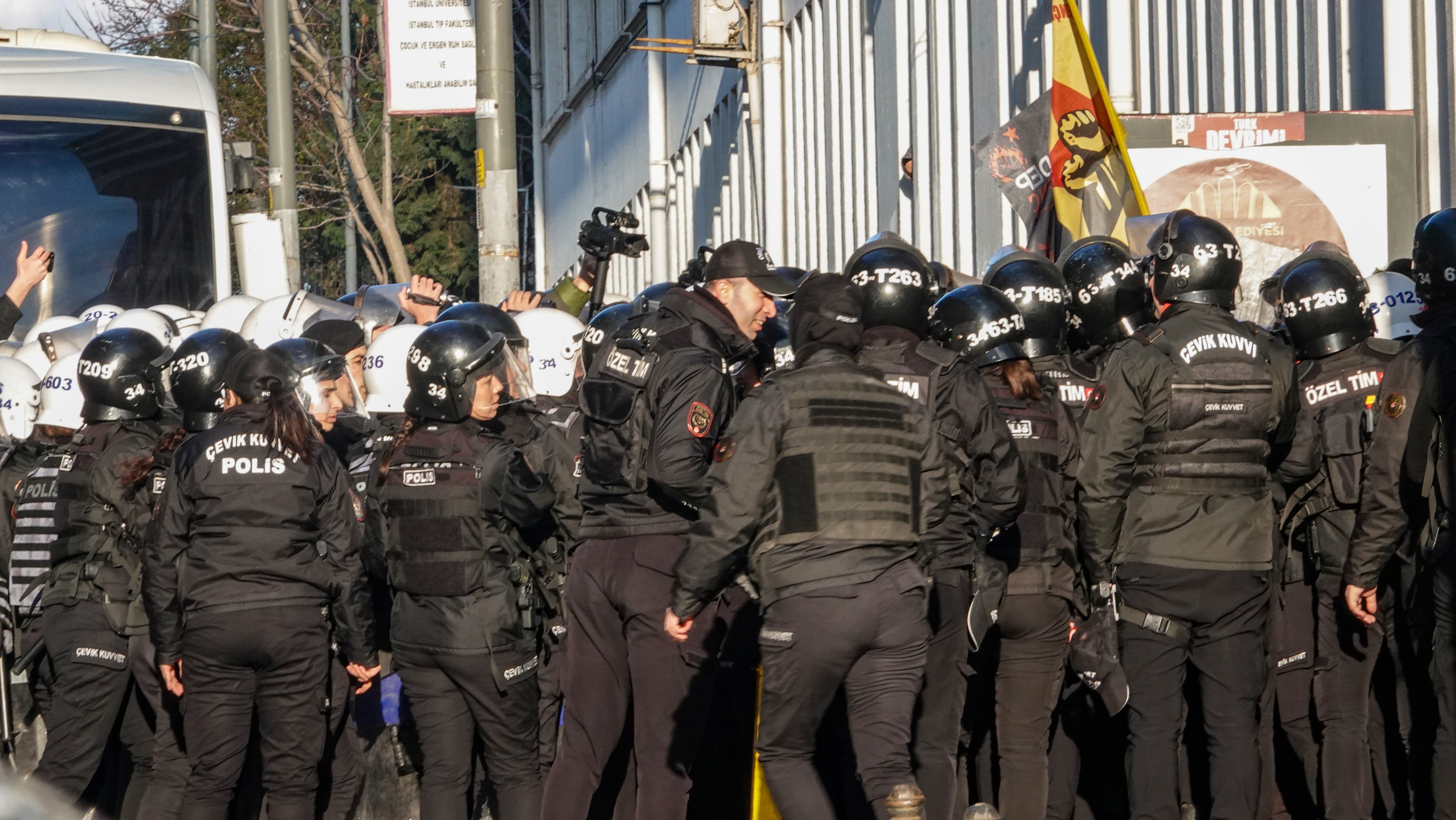 Beriya çalakiyê, polîsan derdora zanîngehê girtin û xwestin rê li ber ciwanên ku dixwestin ji ber xwarinxaneyê ber bi Qada Beyazitê ve bimeşin, bigirin.