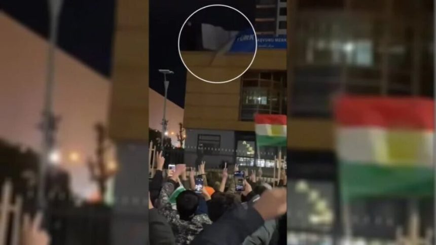 Çalakvanan hêrsa xwe li hember êrîşan nîşan da û tabeleya li ser avahiyê ya ku alaya Tirkiyê jî lê hebû, daxistin xwarê.