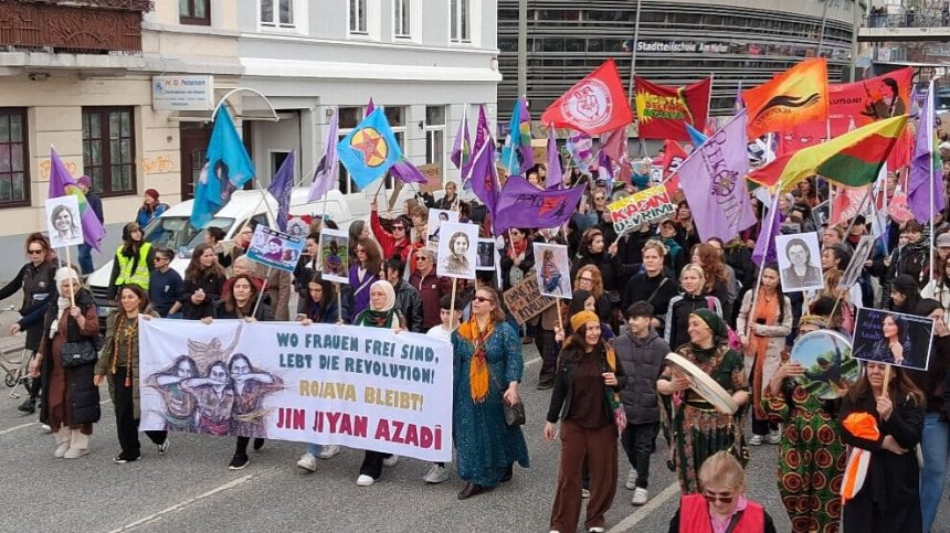 Li bajarê Frankfurtê yê Elmanyayê, bi banga Yekîtiya Jinên Kurd a Elmanyayê (YJK-E)-Hessen, Young Struggle, Yeni Kadın, ADKH, Latinas Unidas, Zora, RoR, Aufbau Frankfurt, Kommunistische Frauen, FKO û Feministische Vernetzungê bi sedan jin saet di 13.00’an de li Kaiserstrasse hatin cem hev.