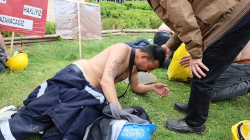 Karkerên Doruk Madencilik a Sendîkaya Kar a Madenê ya Serbixwe, di roja 8’an a greva birçîbûnê de ji bo mafên xwe xwestin ji Parka Kurtuluş ber bi Wezareta Çavkaniyên Enerjiyê ve bimeşin.