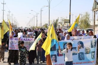 Çalakiyên ku di bin pêşengiya Tevgera Jinên Azad (TJA) de li gelek bajaran tên lidarxistin de jinan gotin “Ji bo jiyanek bê tundî û azad hîn gotina me neqediyaye. Em ê bi hev re tundiyê rawestînin.”