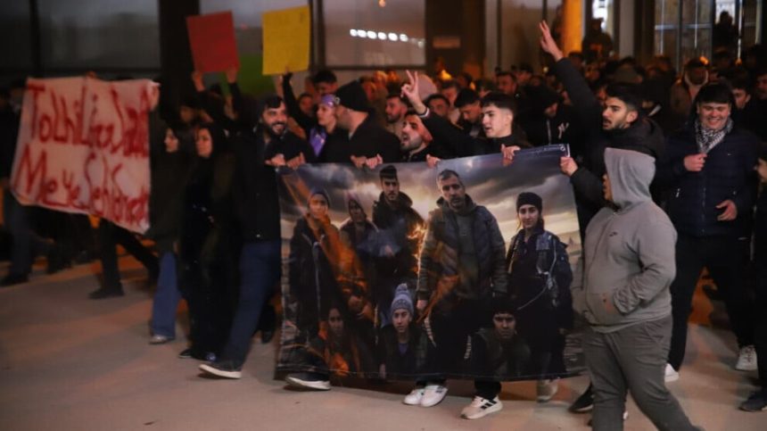 Di tevahiya meşê de, ciwanan deng derxistin û ji bo piştgiriya berxwedana li Rojava dirûşm berz kirin.Li taxên ku ciwan lê meşiyan, welatiyên ku derketin balkonên xwe bi nîşanên serketinê piştgiriya xwe ji bo çalakiyê nîşan dan.