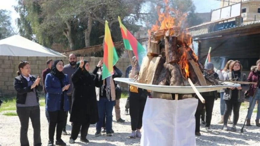 Piştî axaftinê agirê Newrozê dadan. Çalakiyên pîrozbahiya Newrozê dê heta 21`ê Adarê dewam bikin.