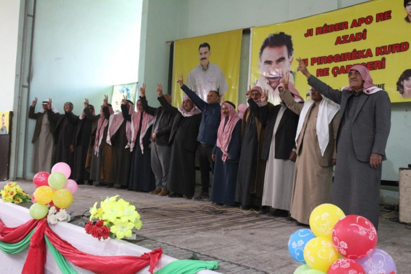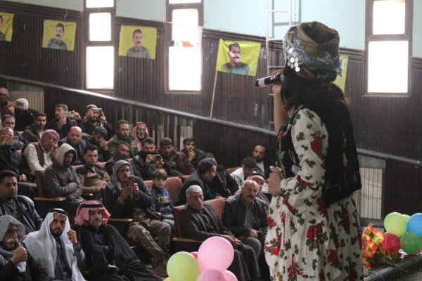 Hevserokê Zanîngeha Kobanê Şervan Mislim axivî û ev roj li tevahî gel, Rêberê Gelê Kurd Abdullah Ocalan, gerîlayên azad û tevahî şervanên di çeperên şer de pîroz kir û got: “Em Newroza îsal bikin wesîleya azadiya fîzîkî ya Rêber Apo. Di vê Newrozê de wê pêngaveke nû bê avêtin. Em bi ruhê netewa demokratîk Newrozê pîroz bikin.”