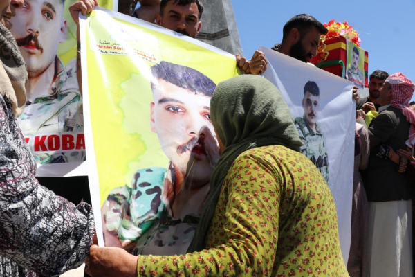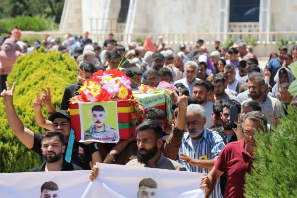 Navneda Raghandina QSD’ê ragihand ku di êrîşa dewleta Tirk a li ser Navenda Hêza wan de 4 hevalên wan şehîd bûn, yek jê Şehîd Bahoz Kobanê (Mihemed Hecî Ebdî) ku di êrîşa Dewleta Tirk a li ser Qamîşloyê de li gundê Hatimiyê de şehîd bû. Îro bi sedan şêniyên Kantona Firatê cenazeyê şehîd bi merasîmeke girseyî spartin axê. Di dema merasîma veşartine cenazeyê şehîd Bahoz Kobanê de, êrîşî Kobanê hate kirin.
