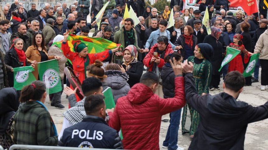 Piştre Parlamentera ya Partiya Wekhevî û Demokrasiyê ya Gelan (DEM Partî) Ayten Kordû axivî û got: “Em ê hemû bi hev re azad bibin. Cejna Newrozê bi têkoşîn û berxwedanên mezin gihîştiye van rojan. Yên ku dîroka Cejna Newrozê afirandine, yên ku Cejna Newrozê anîne vê rojê, berpirsiyariyên mezin jî dane ser me. Li dora me şer heye. Dixwazin gelan bera hev bidin. Emperyalîzm û hêzên hegemonîk careke din di bin siya Şerê Cîhanê yê Sêyemîn de polîtîkayên xwe yên sêwirandinê dimeşînin. Bi banga civaka demokratîk a ku birêz Ocalan di 27’ê Sibatê de li Îmraliyê da destpêkirin, em dixwazin li dijî hemû şeran civakeke demokratîk ava bikin. Bêyî ku em ne li kêleka wan kesên ku di bin siya emperyalîzmê de polîtîkayên sêwirandinê dimeşînin, ne jî li kêleka hêzên yekpare yên ku bi rejîmên Mola û mezhebên olî gel di bin zextê de dihêlin. Komara demokratîk, jiyana demokratîk, yekîtîya demokratîk rê ye. Bi banga birêz Ocalan, em ê li her derê fikra civaka demokratîk û aştiyê ava bikin. Em ê pabendbûna xwe ya bi demokrasiyê re bidomînin.”