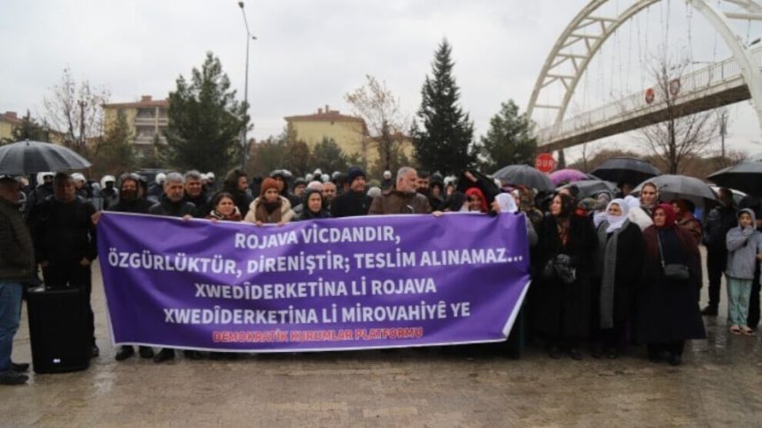 Daxuyanî li Taxa Stasyonê hate dayîn. Hevserokê Artûklû yê DEM Partiyê Mehmet Bîngul di daxuyaniyê de axivî û bang kir ku êrîşên li ser Rojava bên rawestandin.