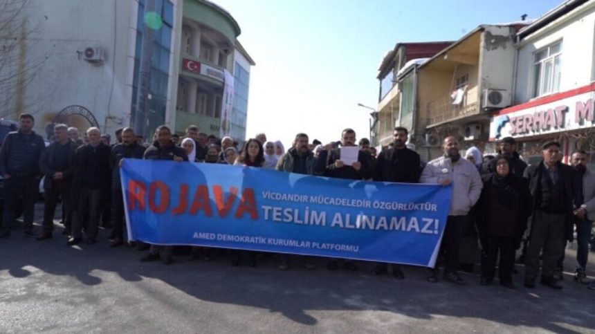 Li navçeya Pasûrê ya Amed, bi pêşengiya Platforma Saziyên Demokratîk li dijî êrîşên li ser Rojava daxuyaniyek çapemeniyê hat dayîn. Di daxuyaniyê ku li Kolana Cengiz Topel hat dayîn de, daxwaza rawestandina êrîşan hat kirin.