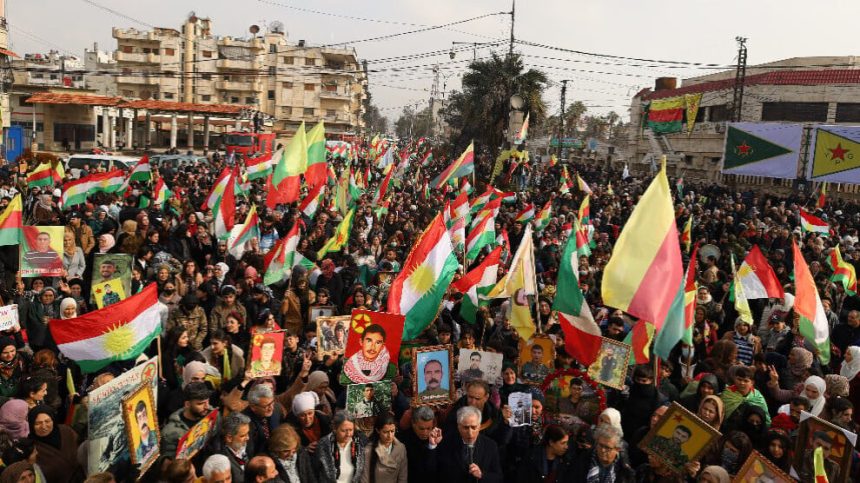 Bi hezaran şêniyên bajarê Qamişlo yê kantona Cizîrê ya Rojavayê Kurdistanê bi boneya “1’ê Sibatê Roja Piştevaniya Rojava ya Cîhanî” û bilindkirina berxwedanê meşek girseyî li dar xistin. Saziyên civakî, partiyên siyasî, şandeya KNK’ê û şandeya Hunermendên Kurd beşdarî meşê bûn.
