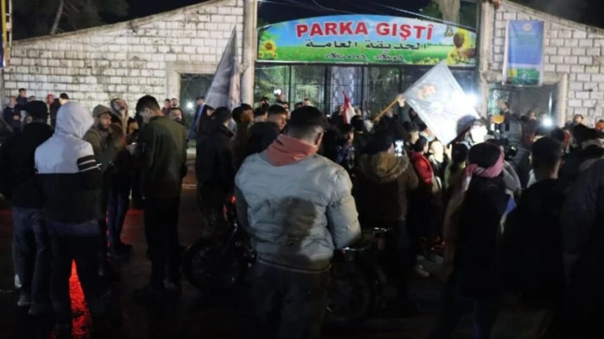Bi sedan koçberên Efrîn û xelkê Qamişloyê ji bo şermezarkirina êrişên li dijî malbatên Kurd li Efrîn û Helebê li pêş Navenda Mihemed Şêxo ya Çand û Hunerê ya Qamişloyê çalakiyek li dar xist.