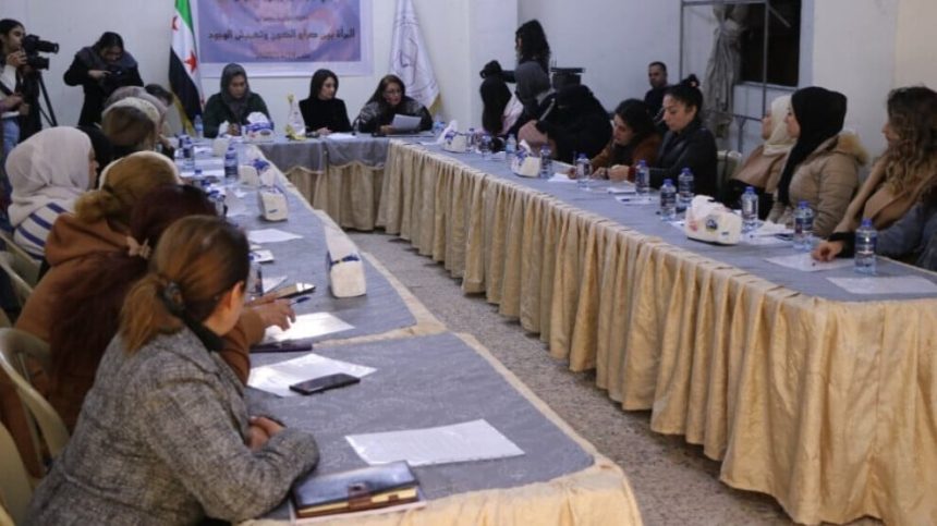Meclisa Jinan a Sûriyeyê li bajarê Helebê bi sernavê “Jin di nava krîza gerdûnî û paşguhkirina hebûnê de” panelek li dar xist.