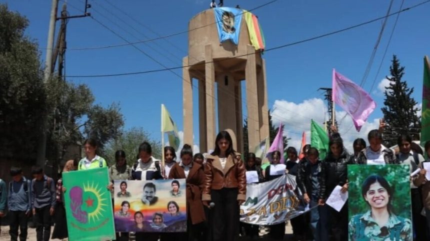 Meşê heta Hewza Avê dewam kir. Li wir piştî rêzgirtinê endama Yekitiya Jinên Ciwan Viyan Omer daxuyaniyek xwend.