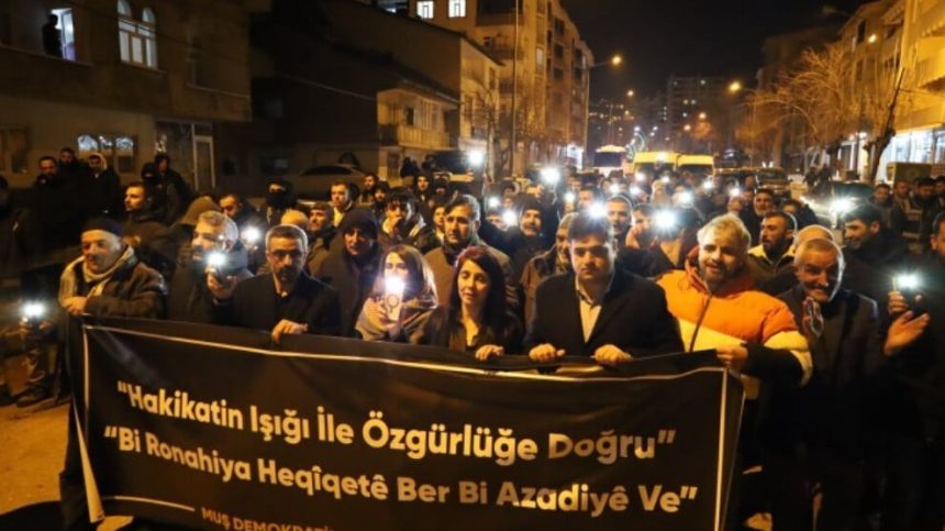Platforma Saziyên Demokratîk a Bedlîsê ji bo şermezarkirina Komploya navdewletî ji Dibistana Seretayî ya Kazim Paşa heta meydana bajêr a Mizgefta Mezin meşek meşaleyî li dar xist. Gelek welatî beşdarî meşê bûn û dirûşmeya “Bê Serok Jiyan nabe” berz kirin. Piştî meşê hevseroka DEM Partiyê ya Bedlîsê Şevder Bîngul diyar kir ku 15’ê Sibatê di dîroka Kurdan de rojek tarî ye.
