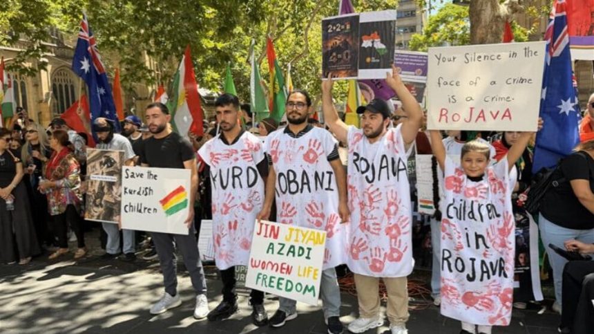Li Sydneyê êrîşên çeteyên girêdayî HTŞ, DAÎŞ û dewleta Tirk ên li ser Rojava hatin protestokirin.
