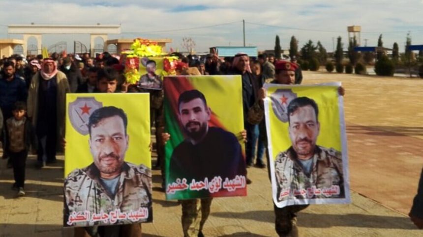 Xelkê bajarê Til Hemîsê yê kantona Cizîrê cenazeyê şervanê Hêzên Xweparastinê şehîd Salih El Kino bi merasîmekî veşart û endamê TEV-DEM’ê Luey Ehmed Xidêr bi bîr anî.