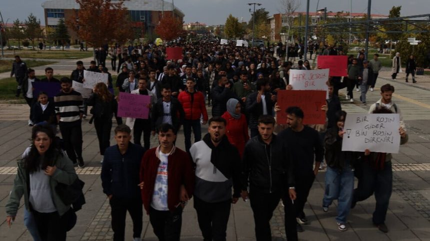 Xwendekarên Zanîngeha Yuzuncu Yil a Wanê ji bo protestokirina helwesta ATK’ê ji ber avahiya rektoriya zanîngehêheta ATK’ê meşiyan. Di meşa ku gelek xwendekar tevlî bûn de dirûşmeyên “Rojîn Kabaîş raperîna me ye”, “Mêr lê didin, dewlet diparêze”, “Jin, jiyan, azadî”, “Rektor îstifa” û “Ev ne xwekuştin e, qetilkirine” berz kirin.